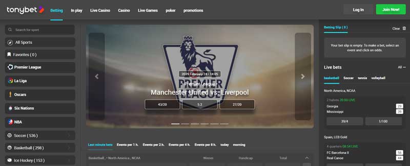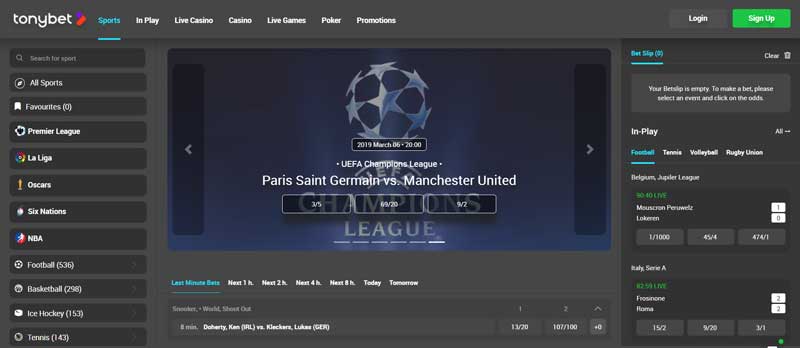 With TonyBet, you are able to dive straight into the main site and see what’s going on before you sign up.
